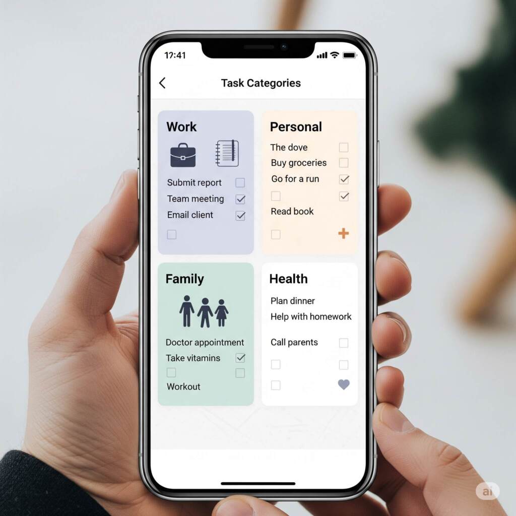Additionally, many existing solutions lack proper categorization features, making it difficult to separate work responsibilities from personal goals or family commitments. This mixing of contexts often leads to mental overwhelm and reduced focus on individual areas of life.